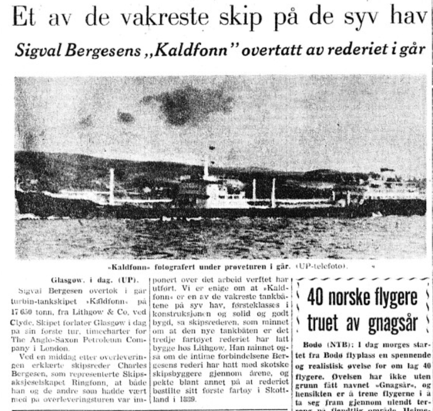Avgang Glasgow 17/9 Norges Handel og Sjøfartstidene 26/9-1955