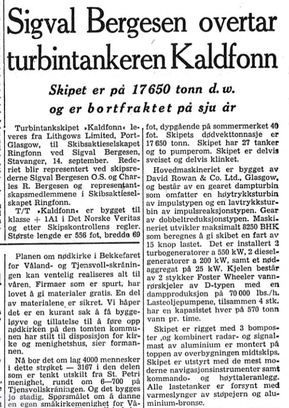 Avgang Freeport 7/10 Aftenbladet 15/10-1955